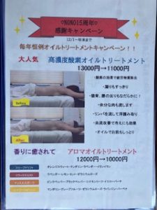 当院自慢の「高濃度酸素オイルトリートメント」13000円→11000円